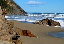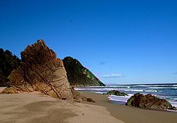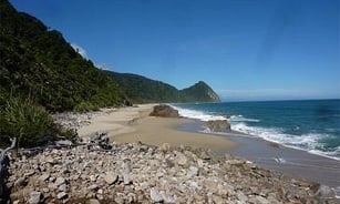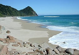 This easily accessible gem of a beach is about 45 minutes into the Heaphy Track from the Kohaihai Shelter. Golden sand, blue sea, crashing waves, densely forested hills, flowering rata and nikau palm groves… Scotts Beach is a fabulous short walk, a good place for a picnic, or for an overnight camp… pure paradise. The sandflies are friendly here, so take some repellent and dress accordingly. Swimming is not advised as the ocean is dangerous and there are strong currents, rips and tides.