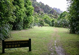 There is a large camping area at the Heaphy Hut with ample space for forty campers, as well as the bunk accommodation inside.