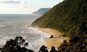The first stop for people walking into the Heaphy Track from the Karamea end is the Scott’s Hill Lookout. A short detour off the Heaphy at the top of the first hill affords a spectacular view north along the West Coast down to Scotts Beach and along the Coast to the region of the Heaphy Hut. From here, you can see the terrain ahead for the rest of the walk to the Heaphy Hut, through the nikau palm groves and across sandy coves to the sound of the crashing waves of the wonderful West Coast.