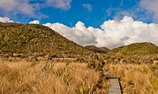 You’ll pass through ancient beech forests, expansive alpine tussock country, see giant rata trees, limestone caves and cliffs, cross broad rivers (all with sturdy bridges) and look out over rugged, densely forested mountains as far as the eye can see.